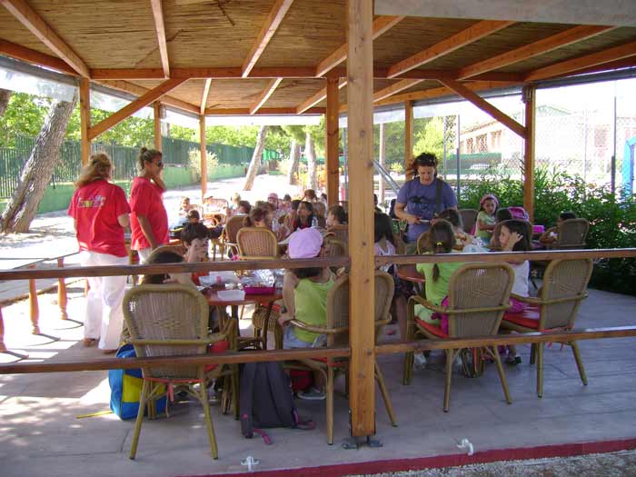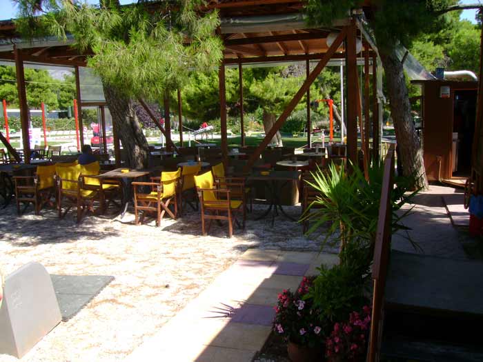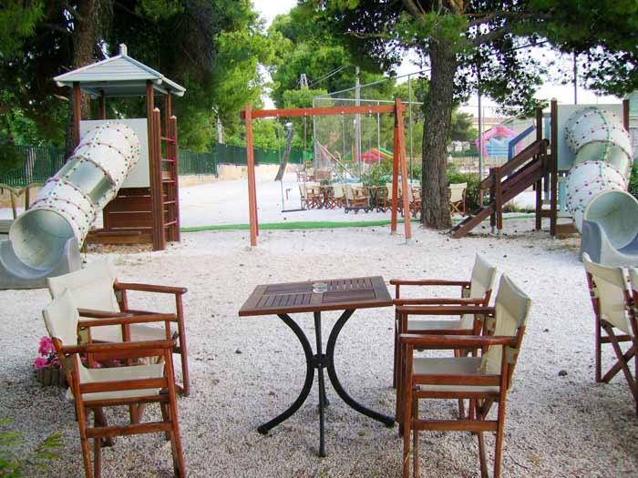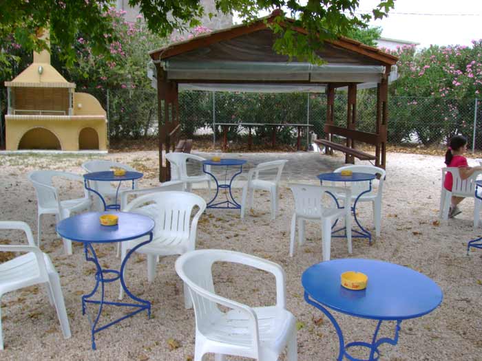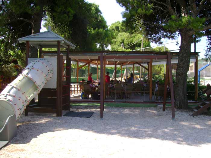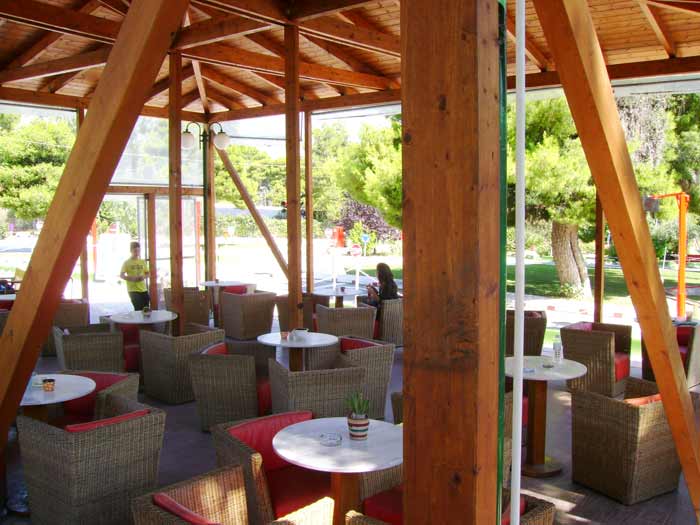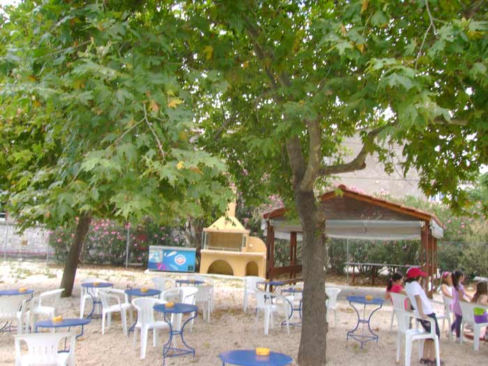 Refreshment stand, a train wagon transformed for accommodating children food during school visits and birthday parties and a lot of resting spots with kiosks under shadowing old trees.