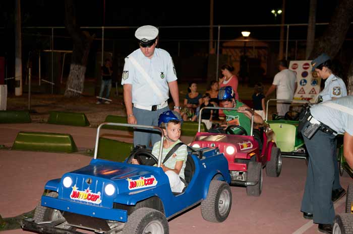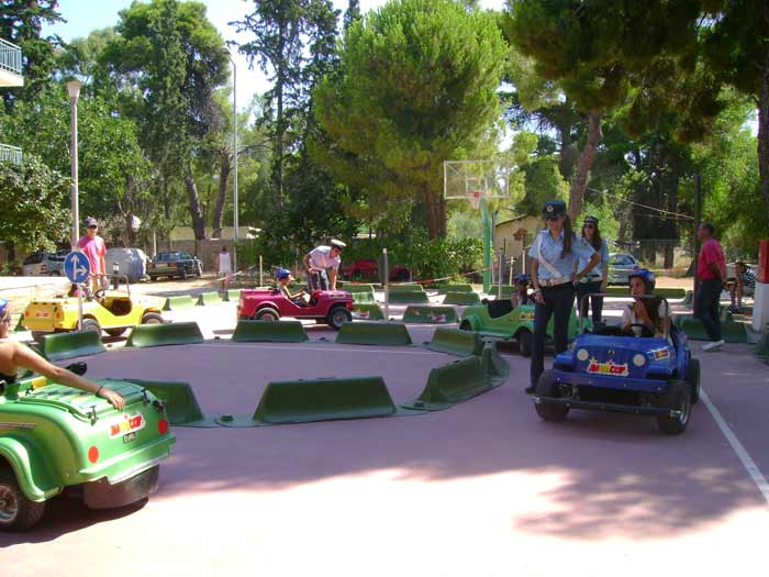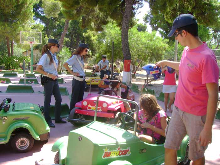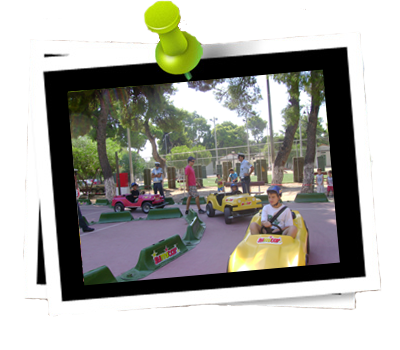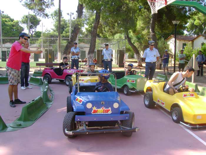 Children drive –they can even take a coo driver if their driving skills are satisfactory- the petrol driven mini cars always wearing helmets and seat belts under the supervision of trained staff.