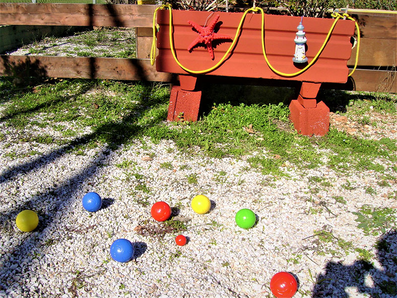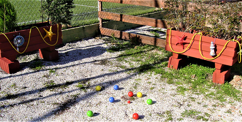 Play area selection from 4 different locations in the Park. Boules for adults and/or children, Jack, starting wreath, measure device and of course support to any queries are provided.