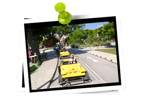 Following the completion of the theoretical part, students 7-14 years old split in groups, enter the mini cars, wear crash helmets, fasten their seat belts, receive analytical guidelines on how to handle the mini cars and the ways they have to follow when they commence driving in the main park.