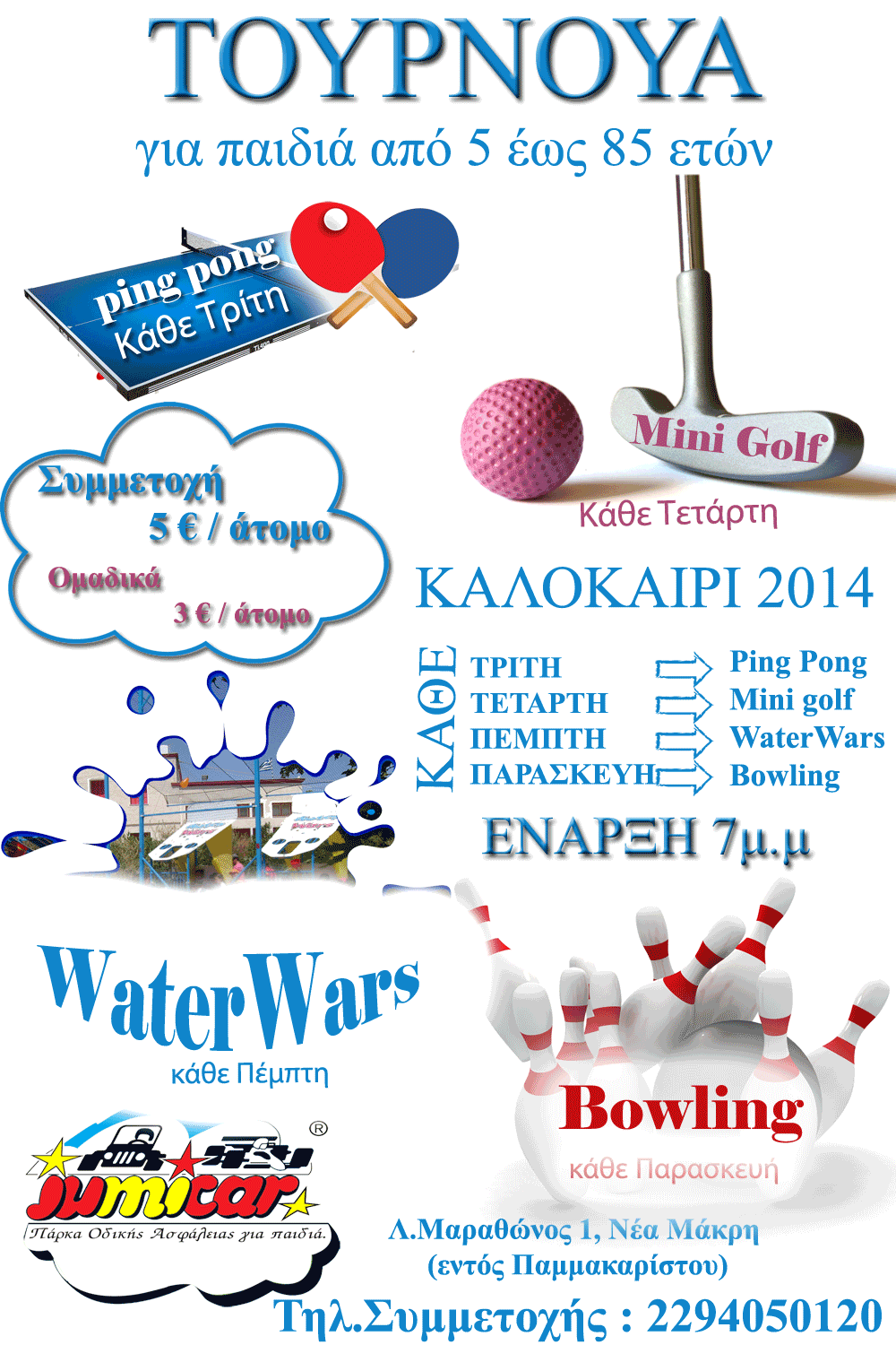 Υπαίθριο Bowling, πινγκ πονγκ, νερομαχιες, μίνι γκολφ